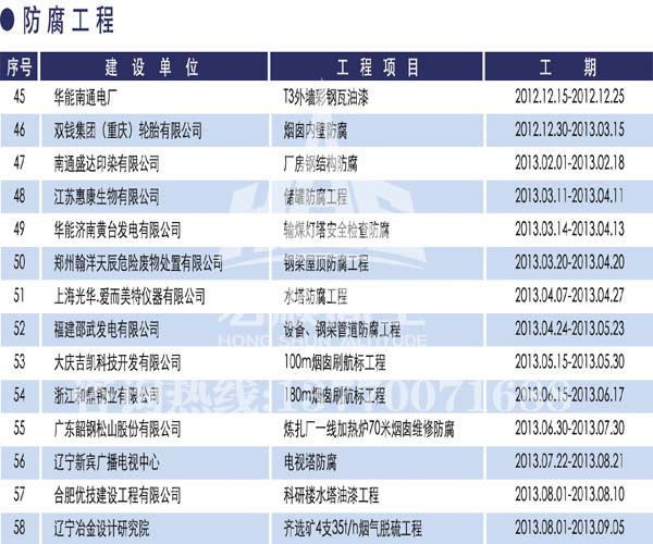 宏順建設(shè)工程有限公司是國(guó)家批準(zhǔn)成立的專(zhuān)業(yè)高空作業(yè)企業(yè):承攬過(guò)(國(guó)內(nèi).國(guó)外)煙囪新建、煙囪防腐、磚煙囪新建、煙囪改造、煙囪維修、煙囪脫硫防腐、煙囪拆除加高、煙囪滑膜等高空作業(yè)工程。具有“不搭腳手架 、 不需要停產(chǎn)”施工特點(diǎn)。